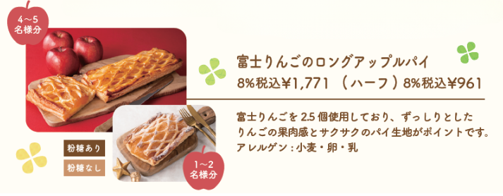 また、大人気商品富士りんごのロングアップルパイもご予約いただけます。